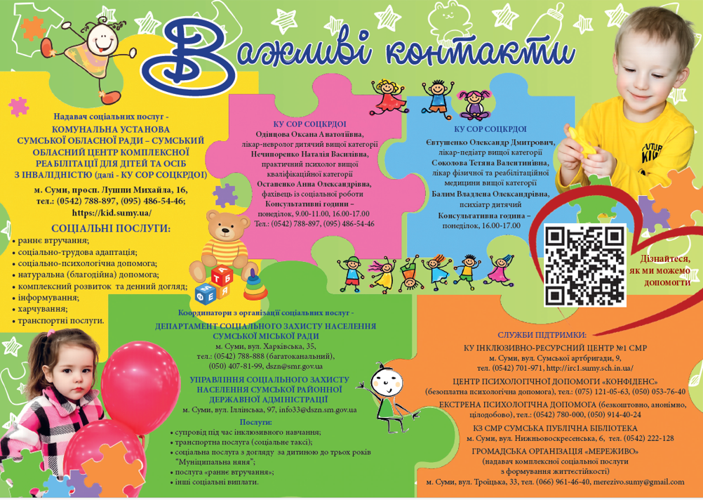 • забезпечення взаємодії та координації з медичними, соціальними, освітніми установами щодо комплексної підтримки дитини та її сім’ї.