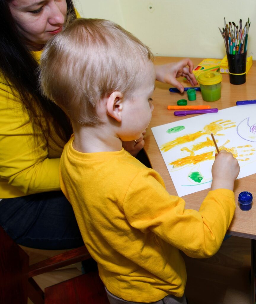 У практиці арт-терапії жовтий колір нерідко використовується як стартовий у роботі з дітьми раннього віку. Його теплі, насичені характеристики сприяють позитивній емоційній реакції, знижують сенсорне навантаження та полегшують встановлення контакту між дитиною та фахівцем. Для дітей із підвищеною сенсорною чутливістю знайомий і емоційно нейтральний стимул відіграє роль «точки входу» у спільну діяльність. Через жовті мазки, долоньки у фарбі та перші «картини» дитина вчиться зосереджуватися, розвиває відчуття власного тіла, поступово приймає нові сенсорні відчуття, отримує досвід успіху без оцінювання.