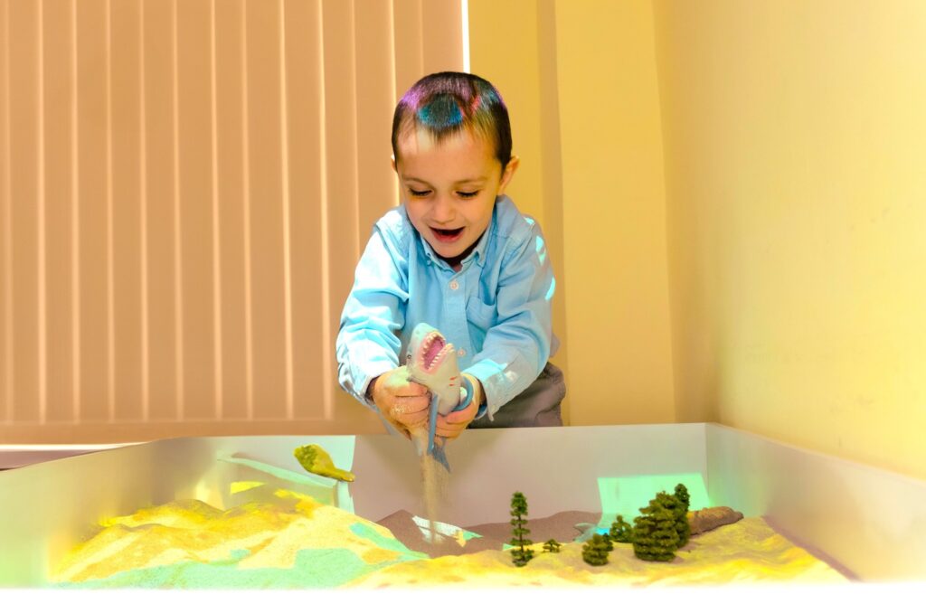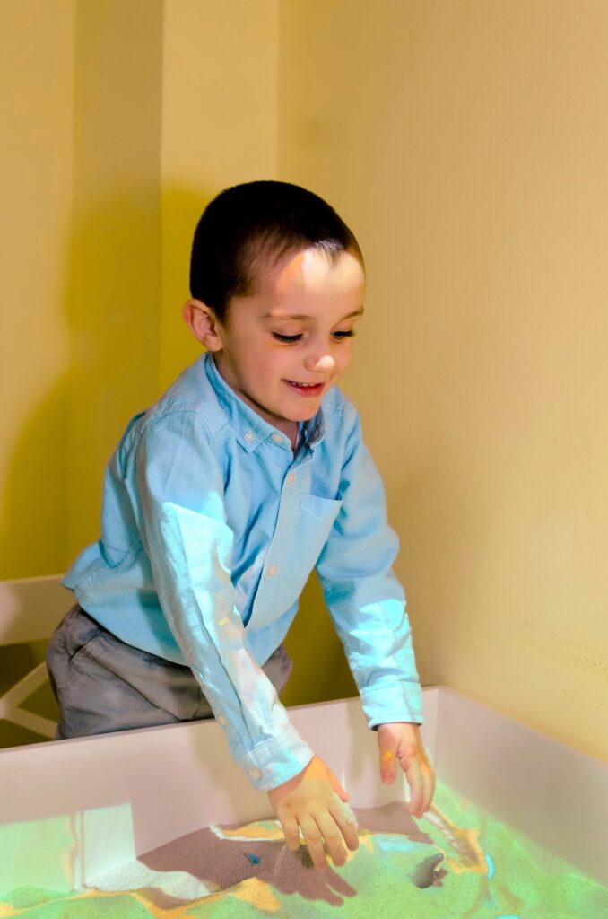 Центром цієї пригоди стає інтерактивна пісочниця. Це живий мікросвіт, де дитина власноруч створює ландшафти своєї уяви. Торкаючись піску, вона розливає сині моря, зводить гори та спостерігає, як світ реагує на кожен її жест.