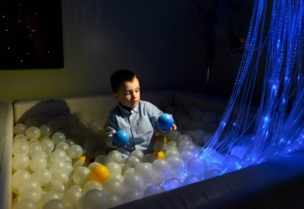 Блакитний колір у цьому просторі – не просто відтінок, а справжній союзник. Він огортає, заспокоює, шепоче: «тут безпечно, тут тебе приймають». Саме в такій атмосфері дитина перестає захищатися і починає досліджувати.